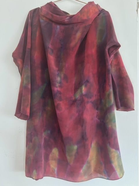 Rebel Red it's a mini dress in pure hand-painted silk, one-of-a-kind piece, crafted and finished in a sartorial.
