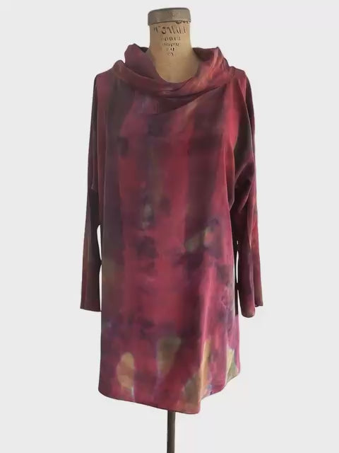 The line of Rebel Red it is soft and enveloping, with wide, draped neck And long sleeves, and is designed to enhance the figure without constricting it.