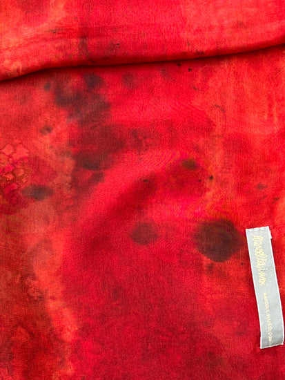 Fire it's a large one Italian silk crepe de chine stole, fluid and luminous, painted with cold and sophisticated nuances: midnight blue, petrol, purple and touches of forest green. The crepe gives to Fire a soft drape and an ethereal lightness. Fire It is perfect to wear both as an elegant stole and as an everyday accessory that gives depth and movement.