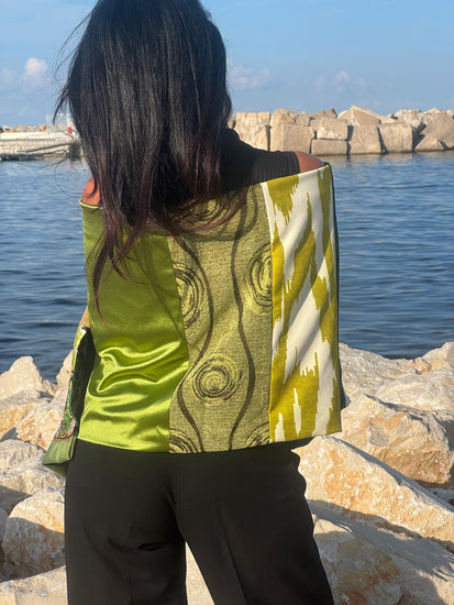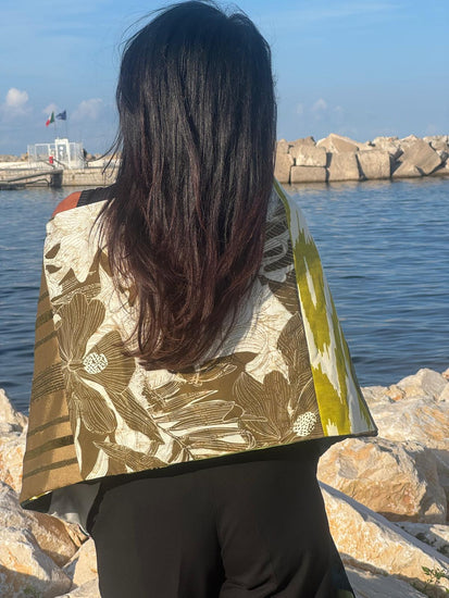 The fabric of Colorful Plots It is light and fluid, with a soft fall that accompanies movements without weighing down the figure.Colorful Plots It is an accessory designed to give personality to an essential outfit, or to add depth to an already sophisticated look.
