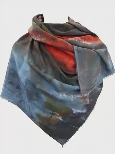 Winter Fog it's a exclusive stole, created with passion and craftsmanship by Marcella Lussi. Stole in hand-painted pure silk crêpe de chine, is a one-of-a-kind piecePerfect on a suit or coat, it can also be a welcome gift for a young or less young gentleman.