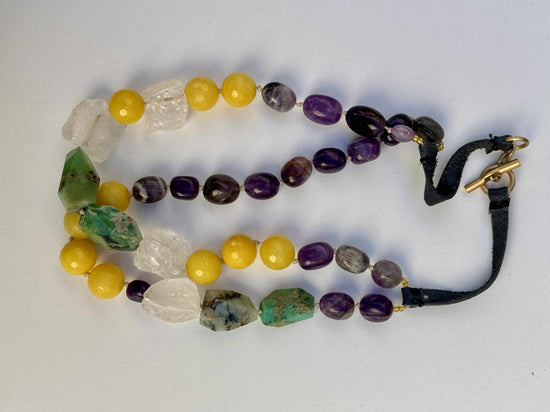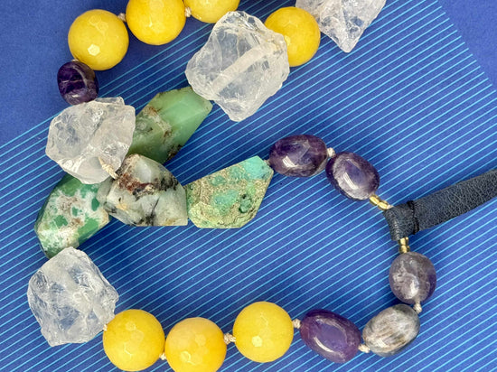 • Perfetta come collana statement su un outfit minimal in toni neutri (nero, bianco, beige) per esaltare i colori vibranti delle pietre.