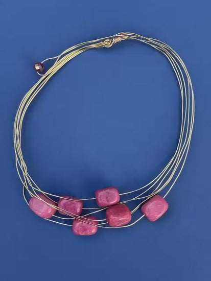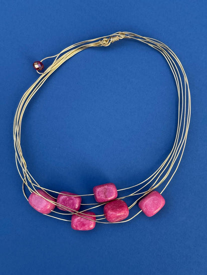 Le Pietre: Protagoniste assolute di Gocce di Melograno sono le gemme in pasta di turchese colorata , dalla forma rettangolare smussata. La loro finitura opaca e la tonalità rosa shocking/fucsia conferiscono al gioiello un carattere moderno e pop, perfetto per chi ama gli accessori di personalità.