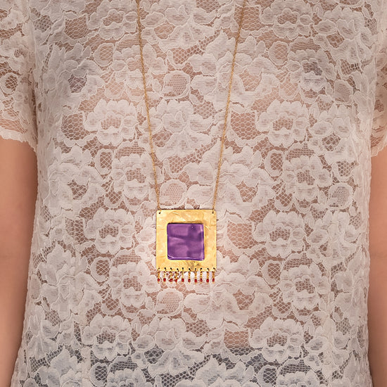 Lavorazione e finitura: ottone tagliato, tessera bilaterale in ceramica viola,