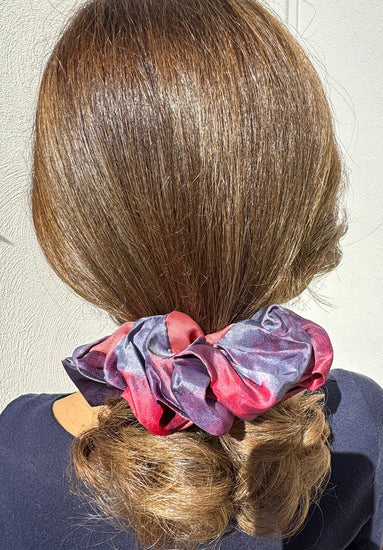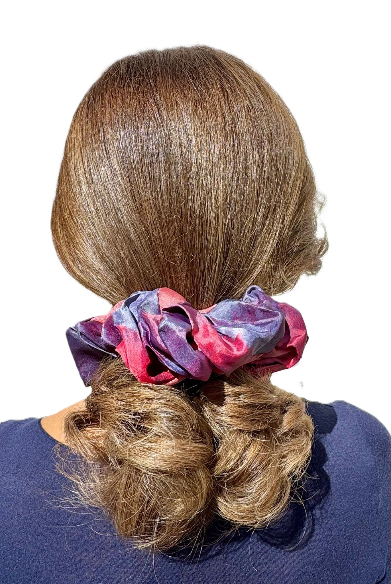 L'elastico Nuvola è generosamente arricciato, creando un effetto nuvola che aggiunge volume all'acconciatura, tipico degli scrunchies di dimensioni medie o grandi.