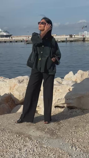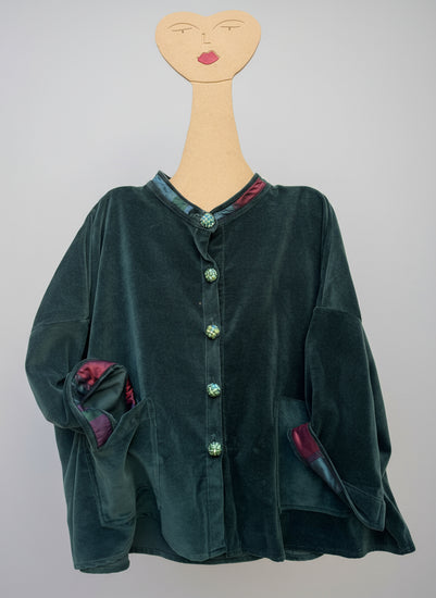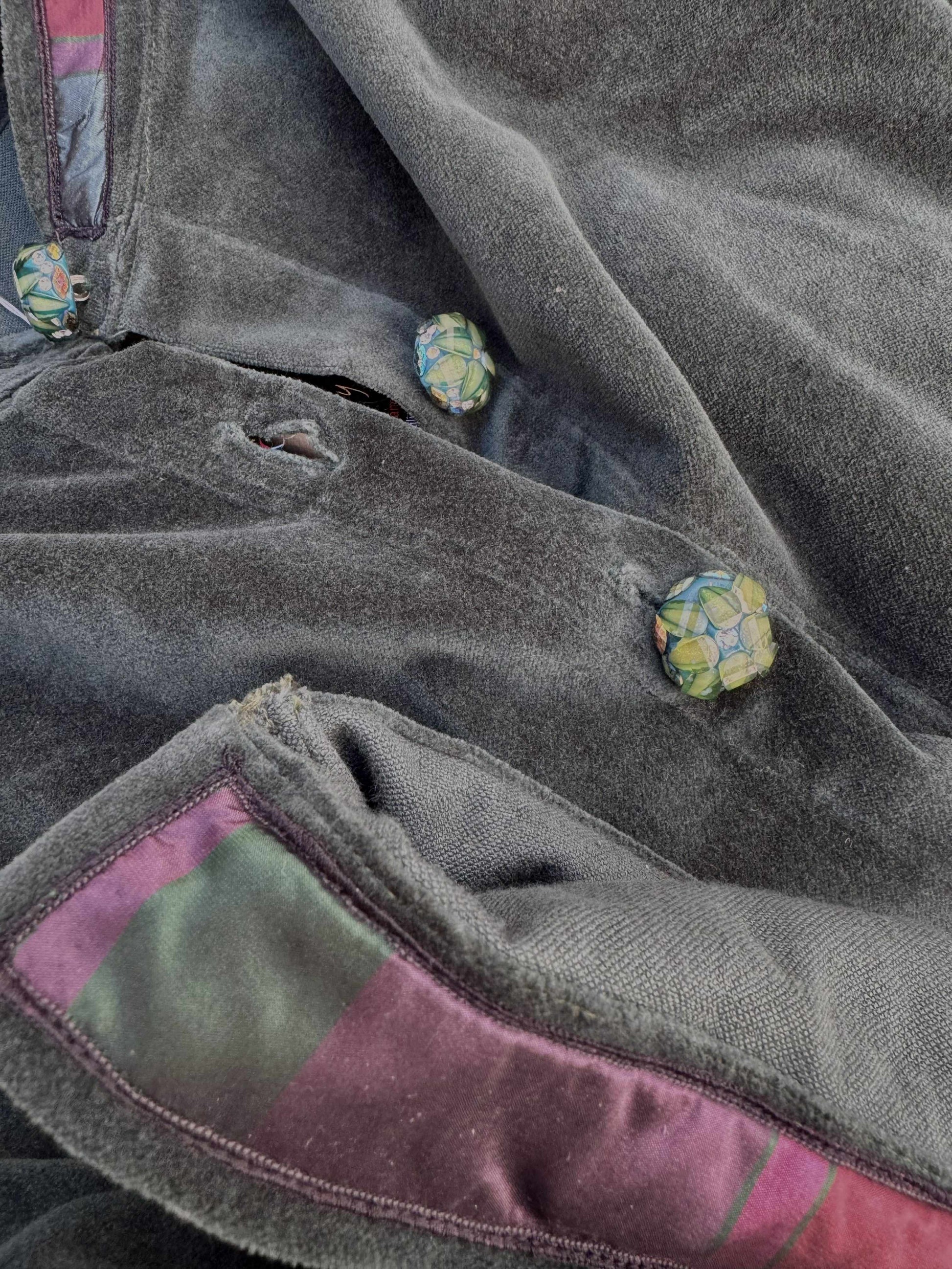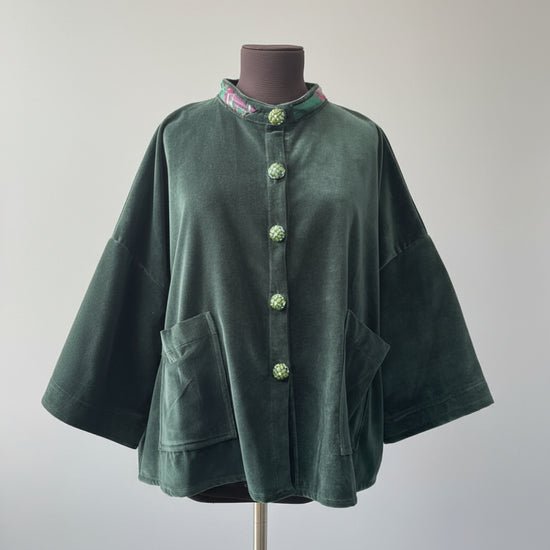 Velvet Link è una giacca artigianale in velluto di cotone, pensata per chi ama i capi che uniscono carattere e morbidezza. La linea è ampia di Velvet Link è rilassata, con chiusura frontale composta da cinque bottoni gioiello. Il collo e i risvolti delle tasche e delle maniche di Velvet Link sono rifiniti in seta con disegno ispirato alle cravatte vintage, nelle tonalità del bordeaux e del verde bosco. Il tessuto, corposo e al tempo stesso fluido, dona al capo una caduta elegante e naturale.