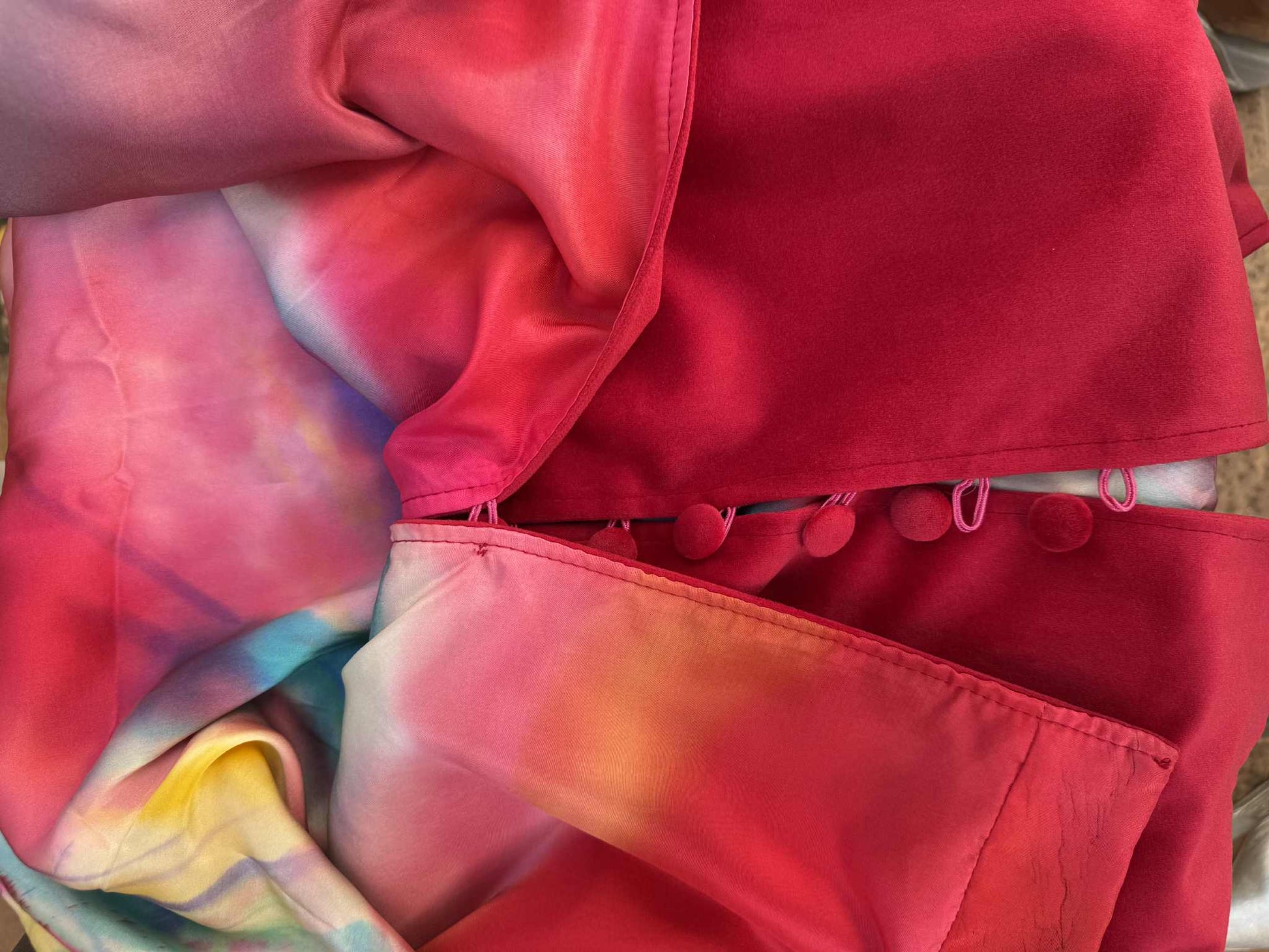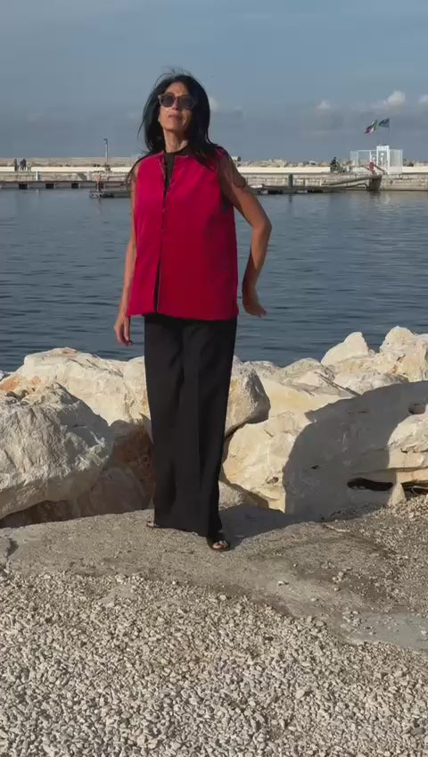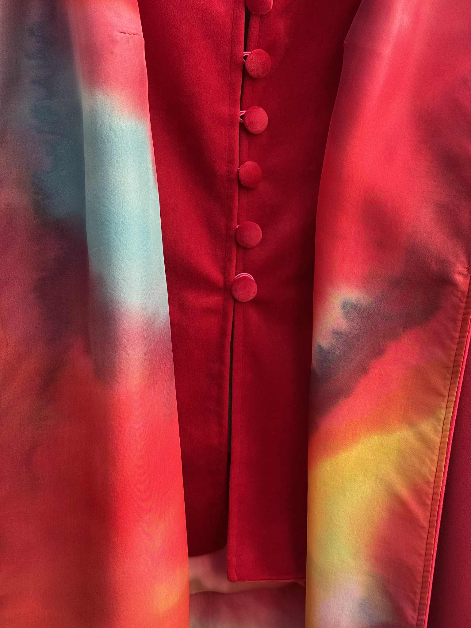 Rubino è un gilè rosso di velluto , un capo esclusivo e raffinato, realizzato con maestria artigianale da Lemorè. La seta dipinta a mano che riveste Rubino è unica, grazie alla lavorazione artigianale che la rende un pezzo irripetibile. Rubino è rivestito di seta dipinta a mano con fondo bianco è striato di rosso e rosa, creando un effetto cromatico intenso e affascinante. I bottoni in stile abito clericale aggiungono un tocco di eleganza classica.