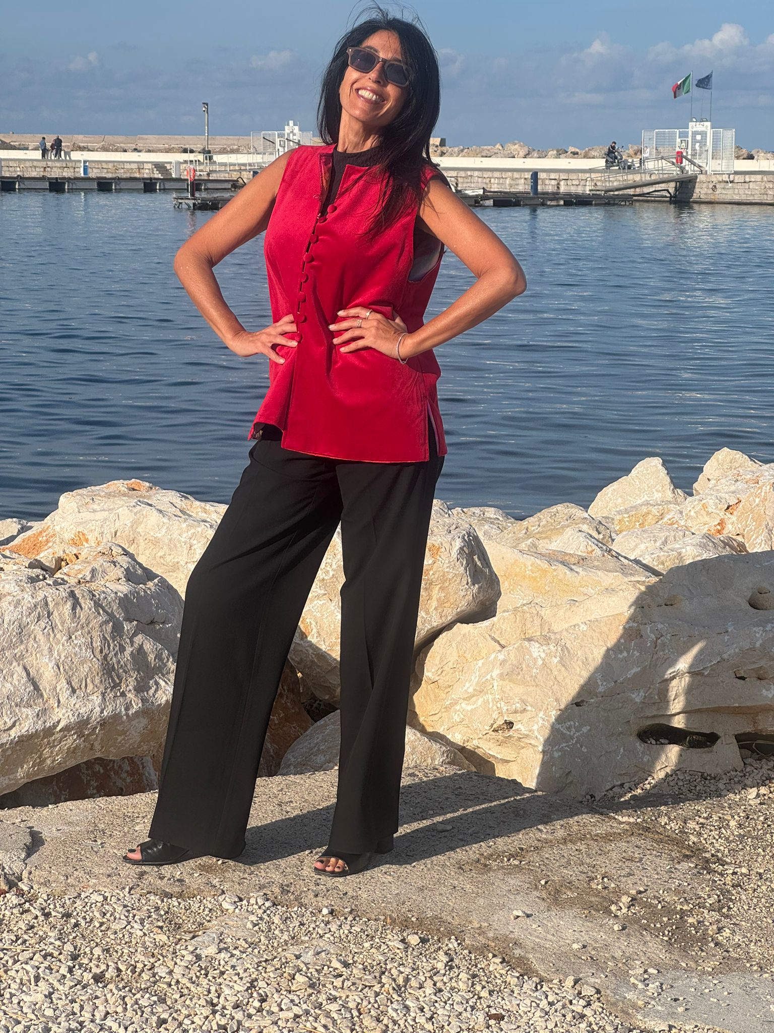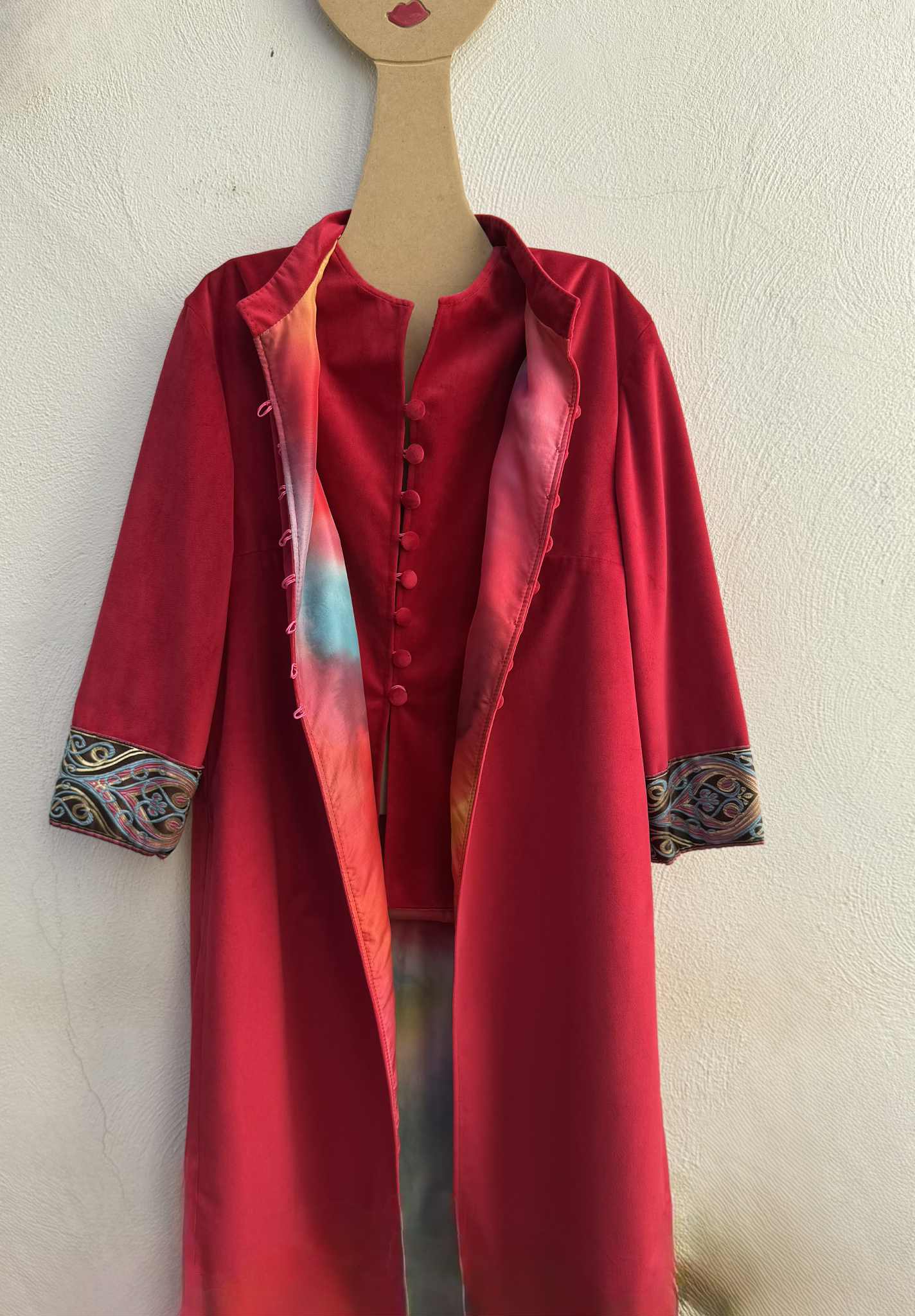 Rubino può essere abbinato allo spolverino Rubino di Lemorè per un look completo e sofisticato.