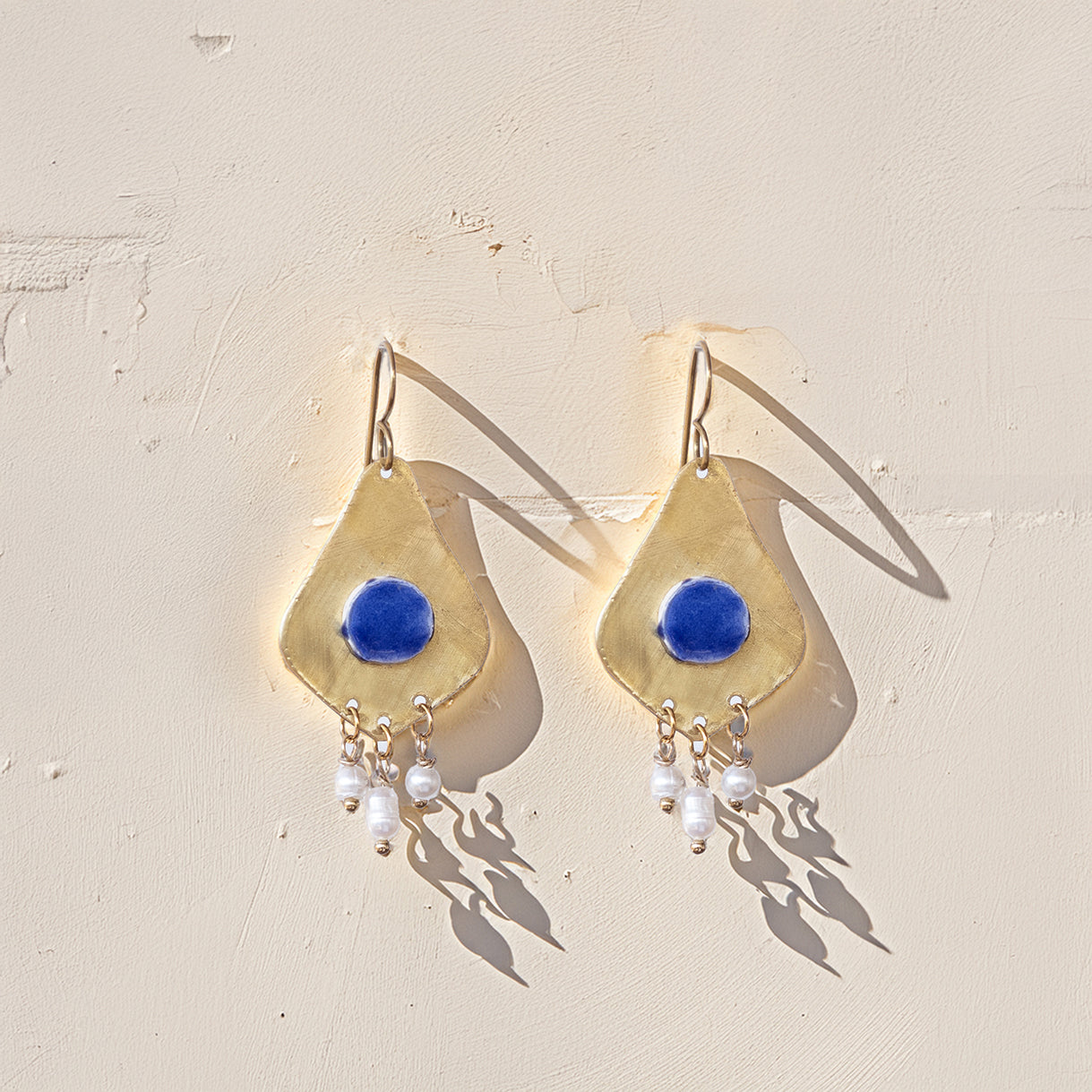 Lavorazione e finitura: ottone tagliato e rifinito a mano, tessera in ceramica artigianale e microperle