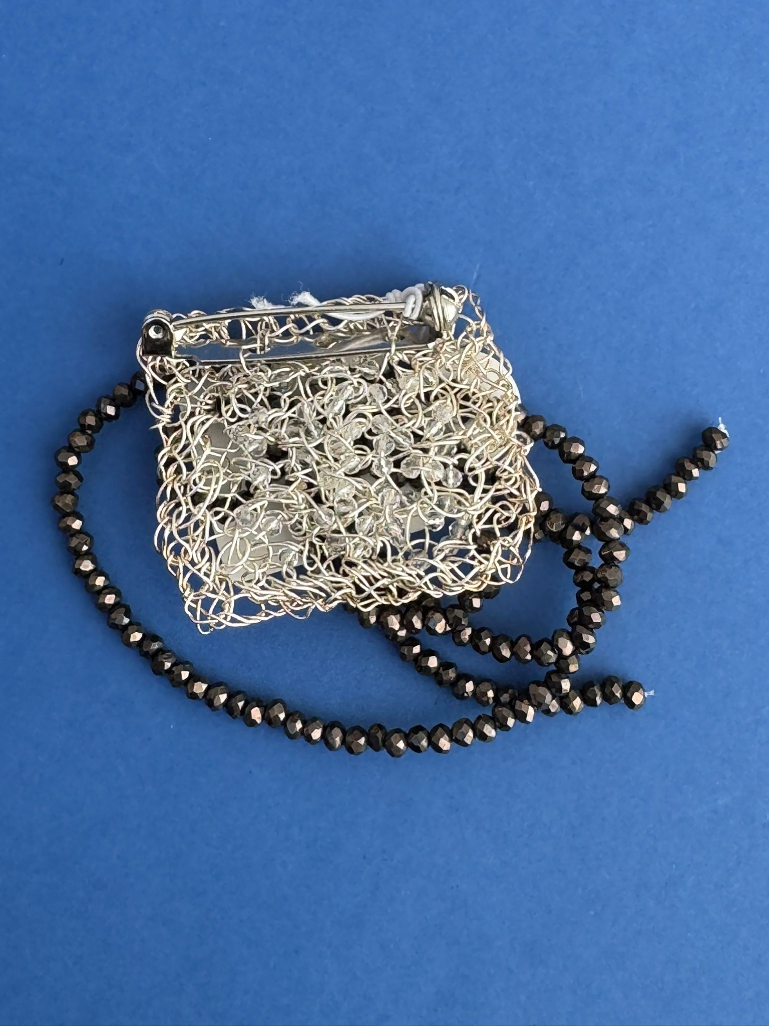 Effetto Visivo: Quando indossata, le file di perline di Metallica reagiscono ai movimenti del corpo, catturando la luce da diverse angolazioni e dando vita alla spilla.