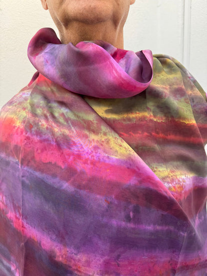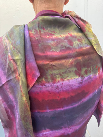 La stola Foliage Sicilianoè dipinta a mano: piccole irregolarità e imperfezioni sono dovute alla lavorazione totalmente artigianale che la rende unica.