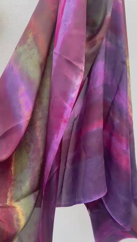 La stola Foliage Siciliano è double face ed in seta pongee, orlata a mano (100% seta).