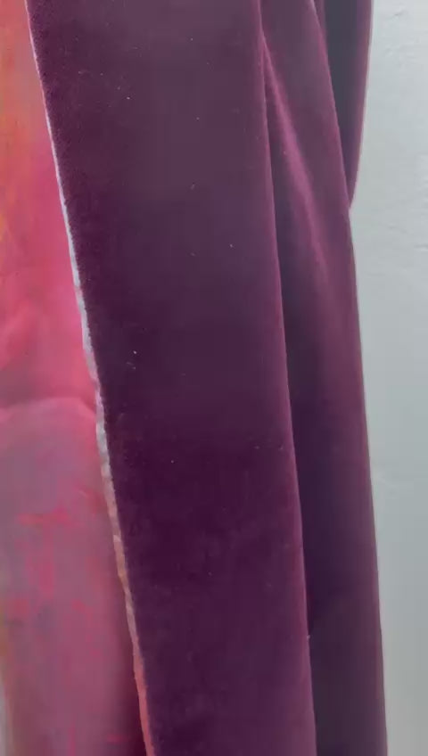 Piccola Cappa Bordeaux è realizzata in velluto di seta Bordeaux, rifinita con una fodera in raso dipinto a mano che aggiunge luce e carattere al movimento. Piccola Cappa Bordeaux è realizzata con cura artigianale, ed è un capo leggero e versatile, capace di trasformare con delicatezza anche l’outfit più semplice .
