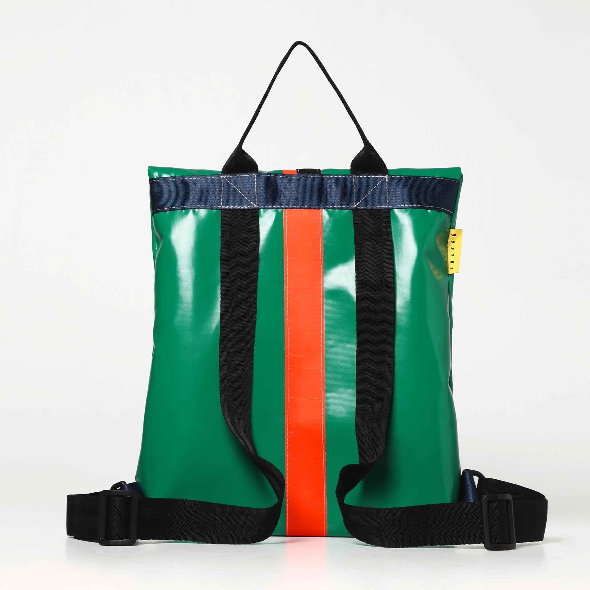 Questo prodotto è stato realizzato con vele usate che hanno attraversato il Mar Mediterraneo e il Mare del Nord, recuperate presso armatori, velisti e velerie.