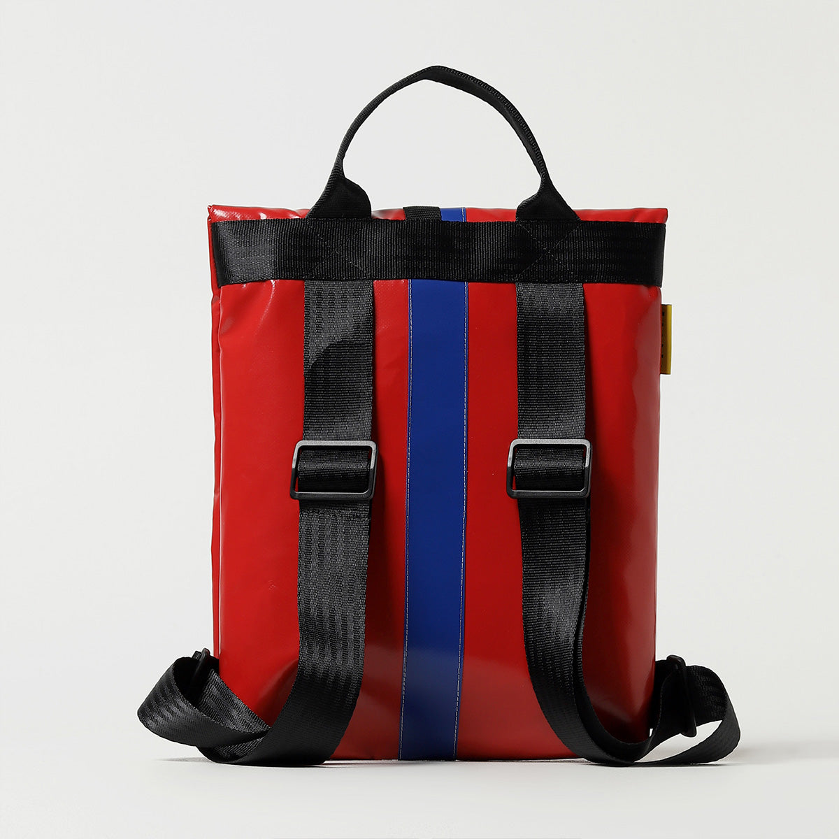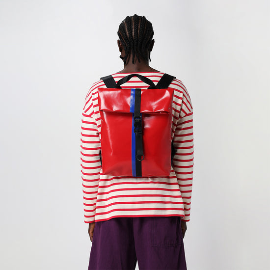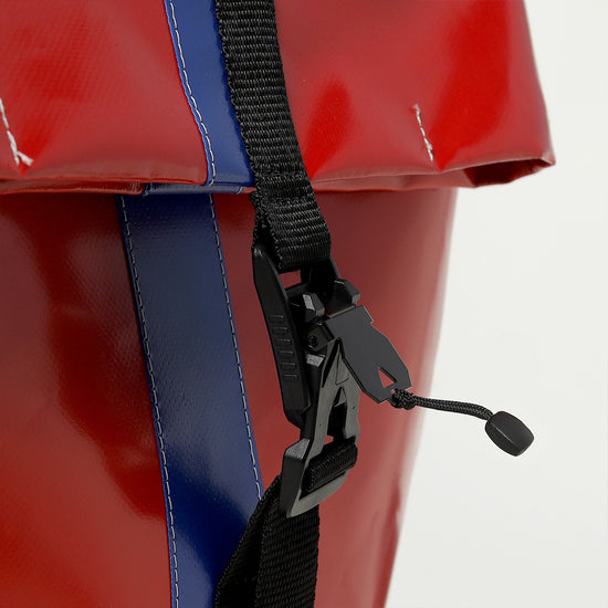 Zaino urban-proof, della collezione VINYL. ALLEY E' Realizzato con scarti di PVC, tasca interna con chiusura a velcro, manico per portarlo a borsa, spallacci e cinghie regolabili e comoda chiusura a calamita Fidlock®.